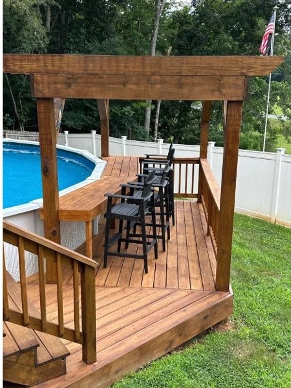 Upgrade your poolside experience with o ur aboveground pool decks that adds style, safety, and functionality to your backyard. Designed to seamlessly wrap around your pool, these decks provide easy access, a secure walking surface, and the perfect space for lounging, sunbathing, or entertaining. Built with durable pressure treated wood, composite decking, our pool decks are made to last and complement any outdoor setting.
